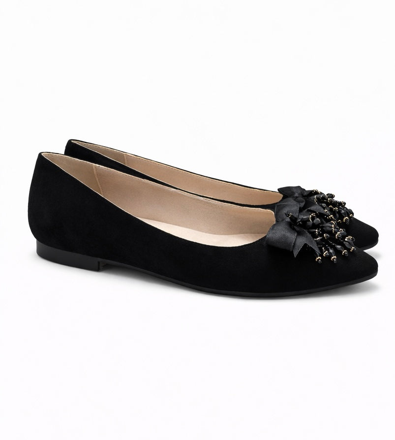 Balerini Damă Din Piele Naturală Negru Cu Accesoriu 1249