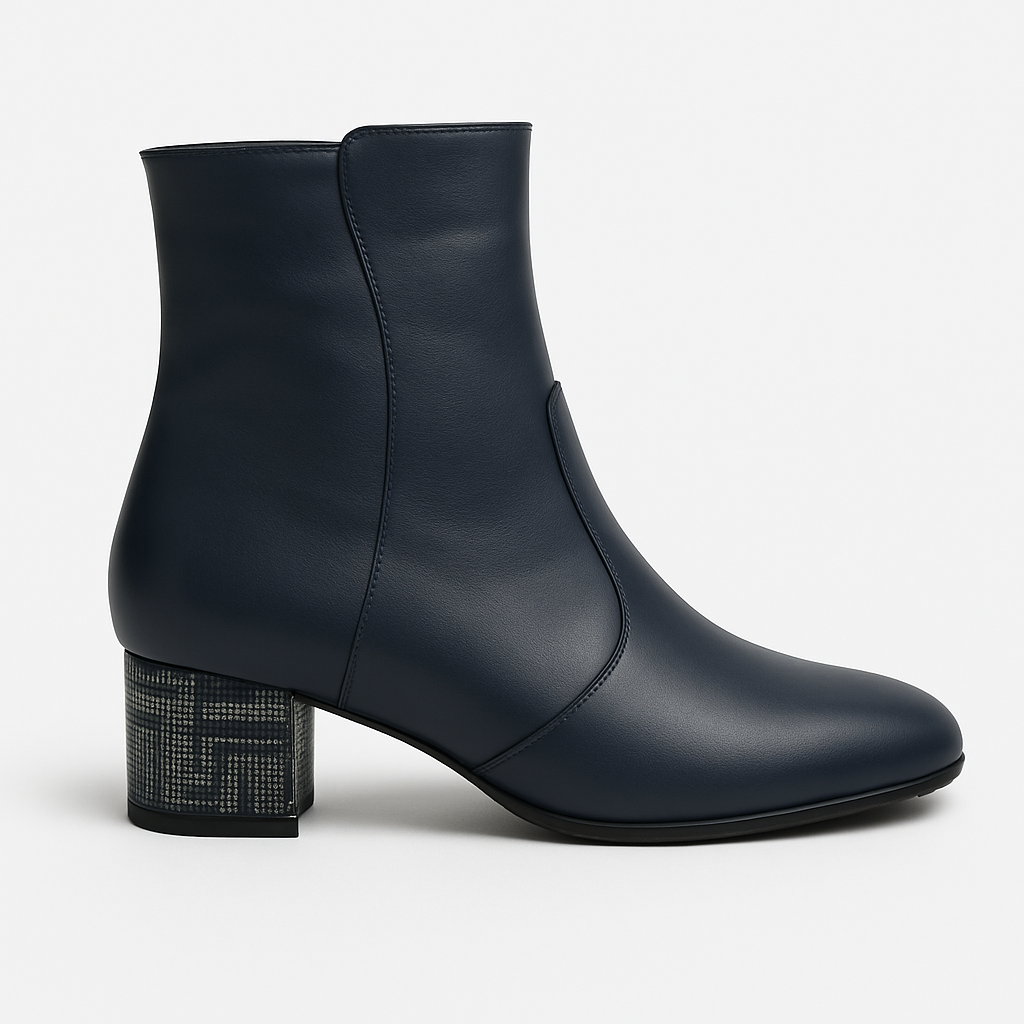 Gheata Dama Din Piele Naturala Bleumarin Cu Toc Îmbrăcat