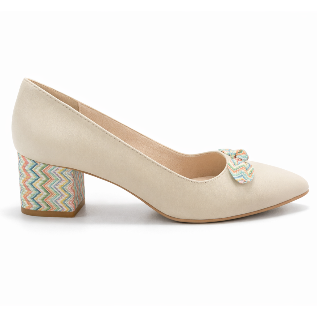 Pantof Damă Din Piele Naturală Bej Cu Fundă 940