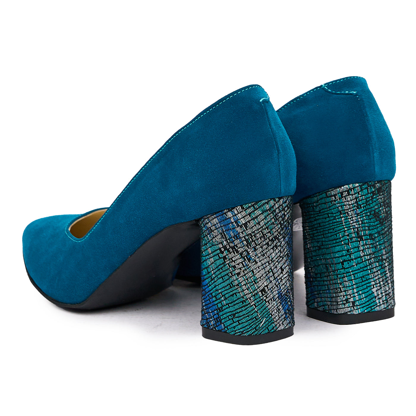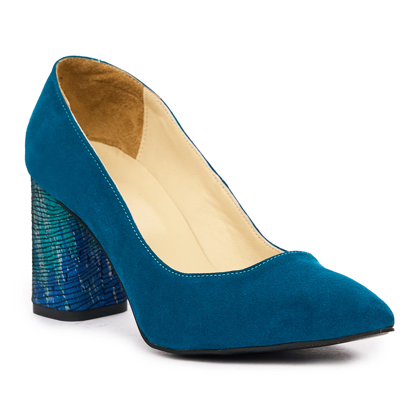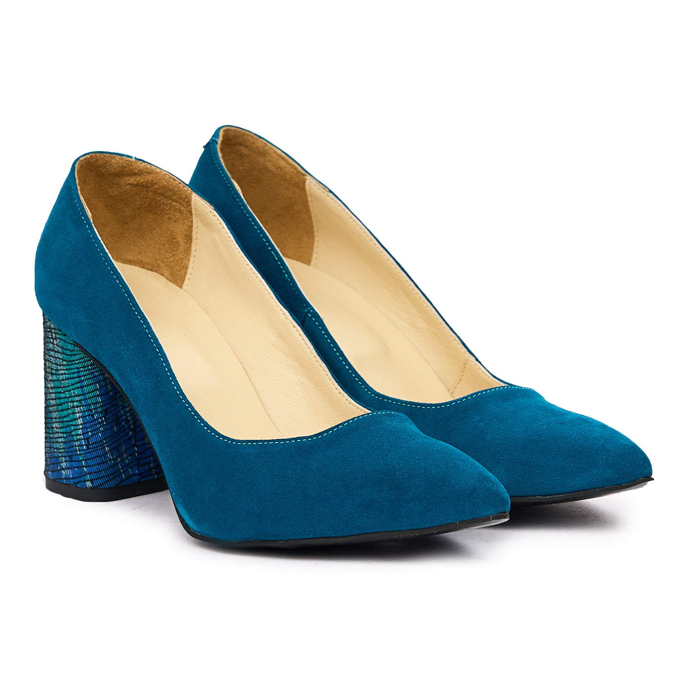 Pantofi dama cu toc gros din piele naturala albastra