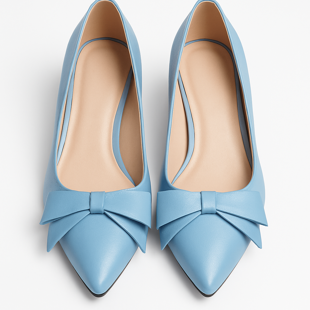 Pantofi Dama Din Piele Naturala Albastru Deschis Cu Fundă 558
