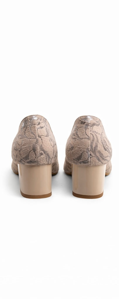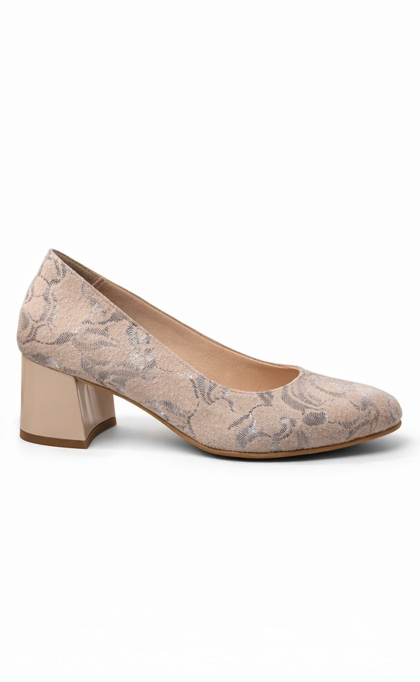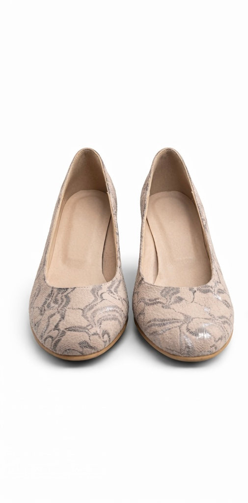 Pantofi Dama Din Piele Naturala Bej Velur Cu Imprimeu 931