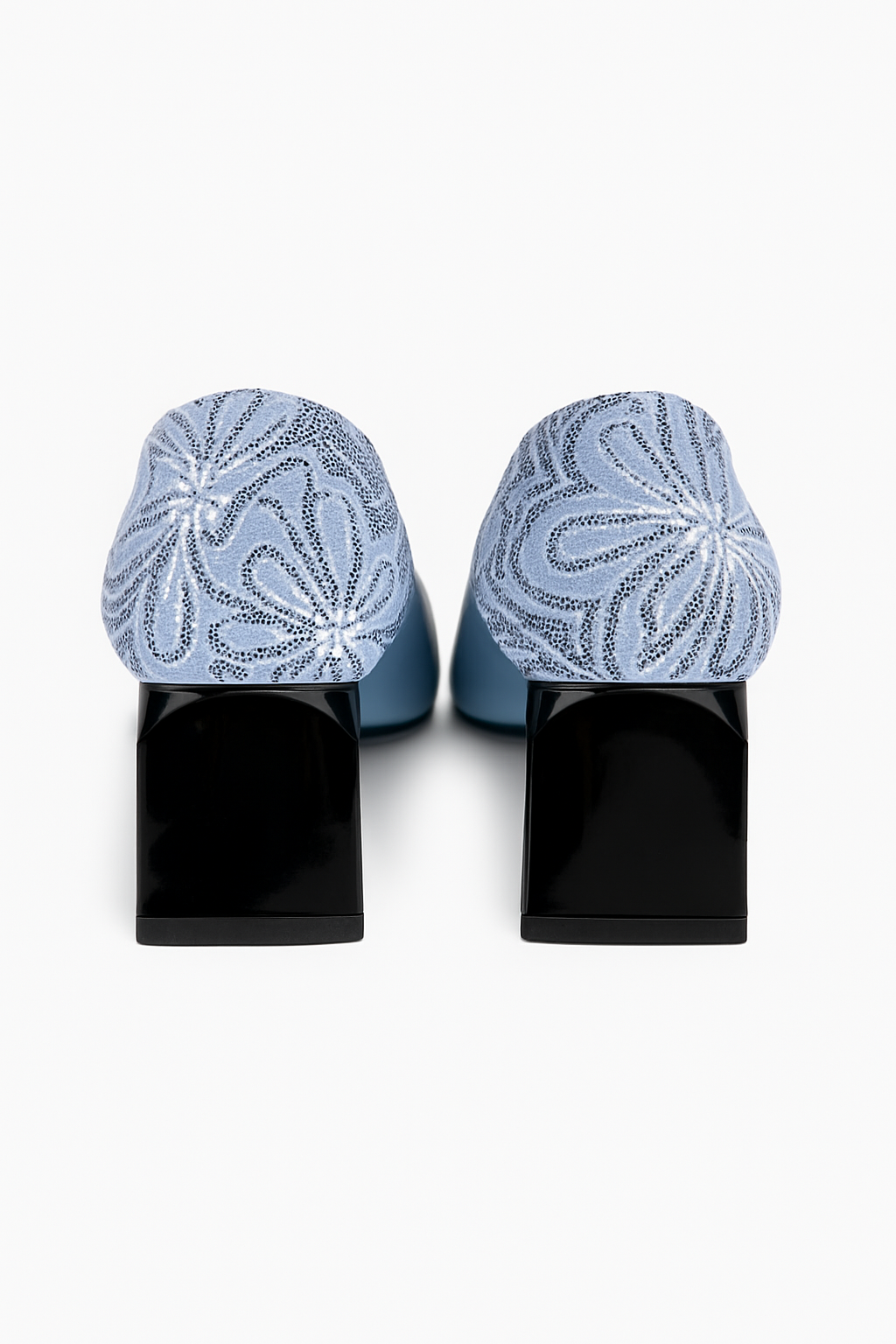 Pantofi Dama Din Piele Naturala Bleu Cu Flori 786