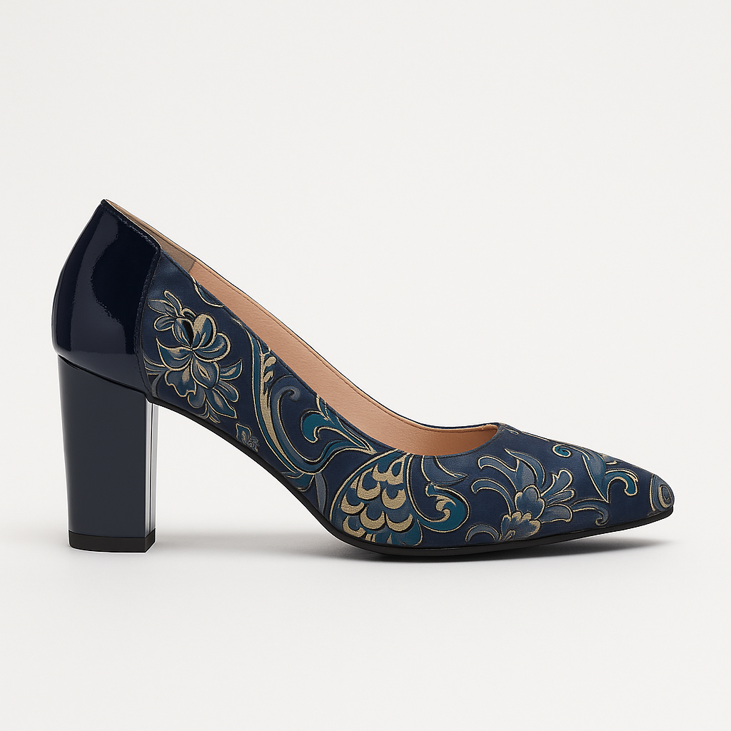 Pantofi Dama Din Piele Naturala Bleumarin Velur Cu Flori