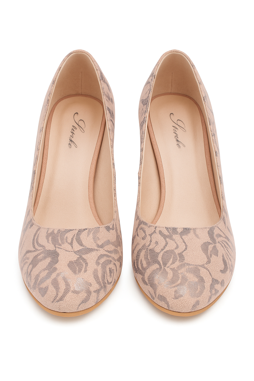 Pantofi Dama Din Piele Naturala Capucino Cu Flori 823