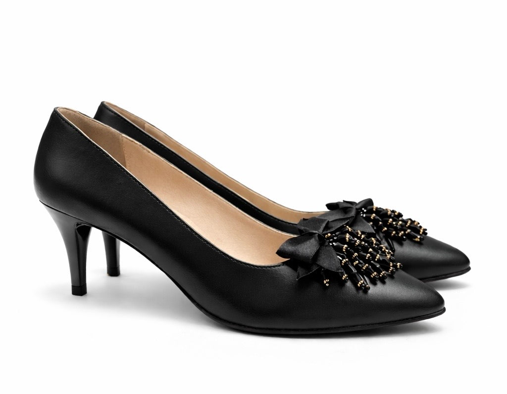 Pantofi Dama Din Piele Naturala Negru Cu Accesoriu 558