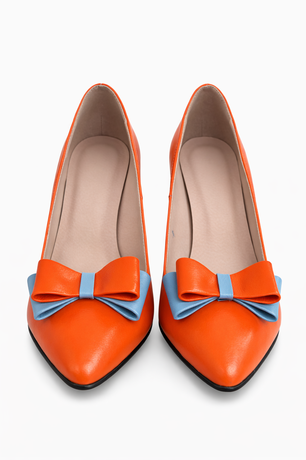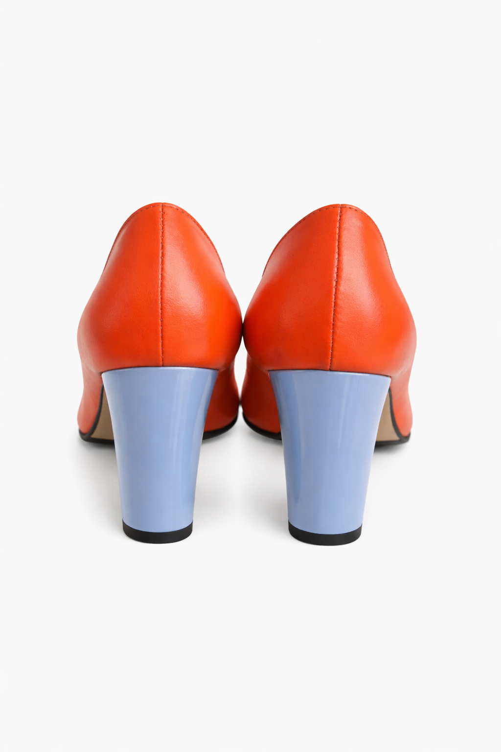 Pantofi Dama Din Piele Naturala Portocaliu+ Bleu 814