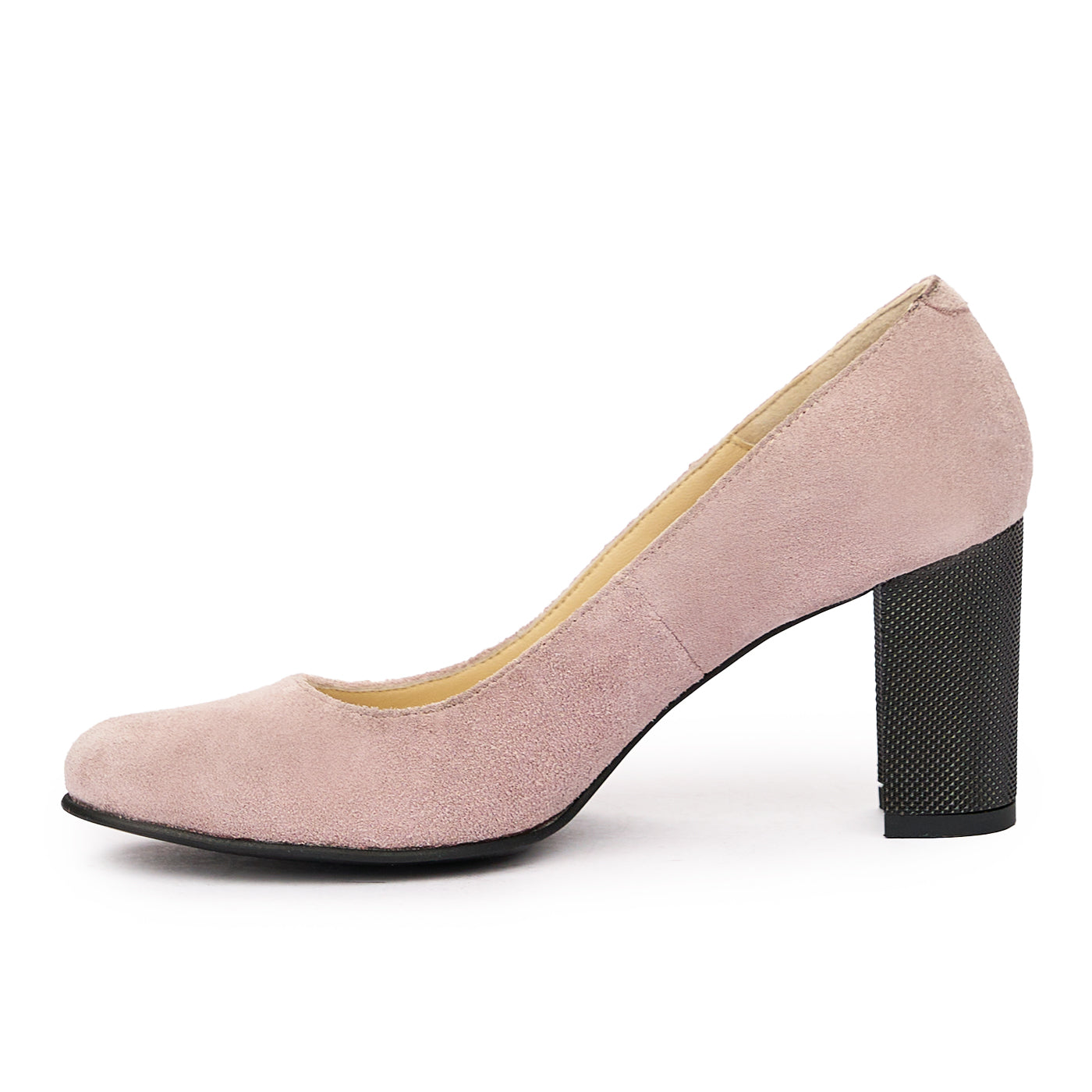 Pantofi dama cu toc gros din piele naturala velur capucino