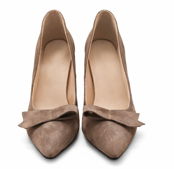Pantofi Dama Din Piele Naturala Maro Velur Cu Fundă 871