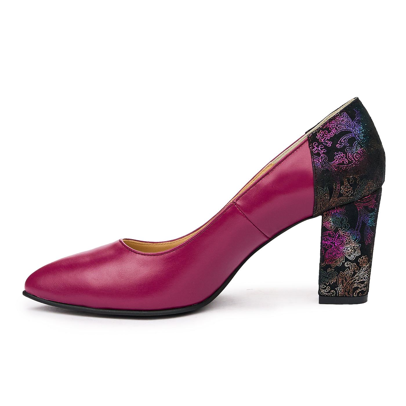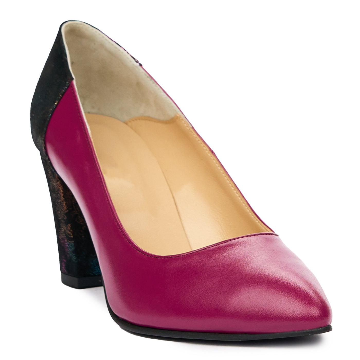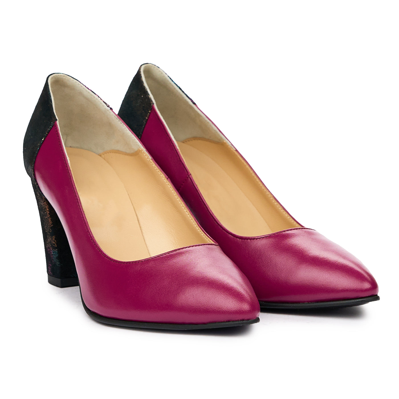 Pantofi dama cu toc gros din piele naturala mov