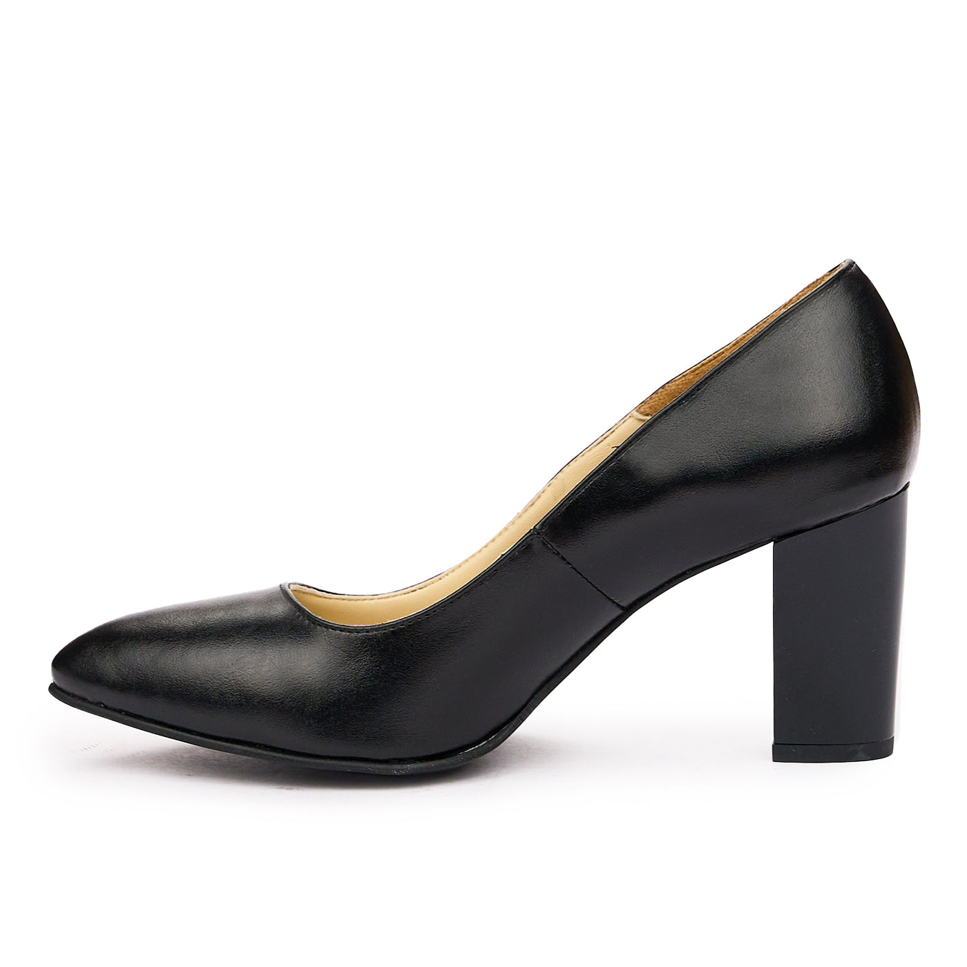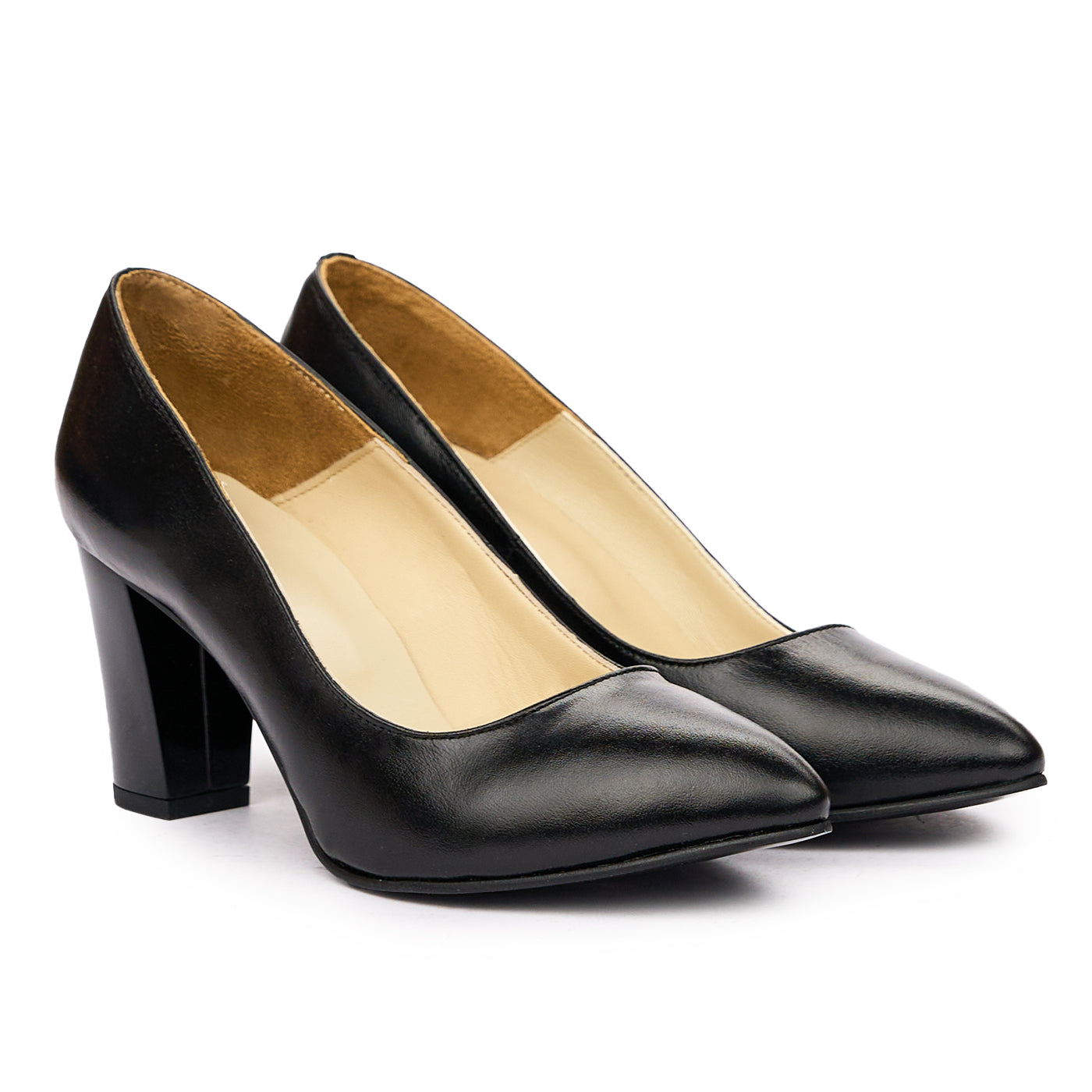 Pantofi dama cu toc gros din piele naturala neagra