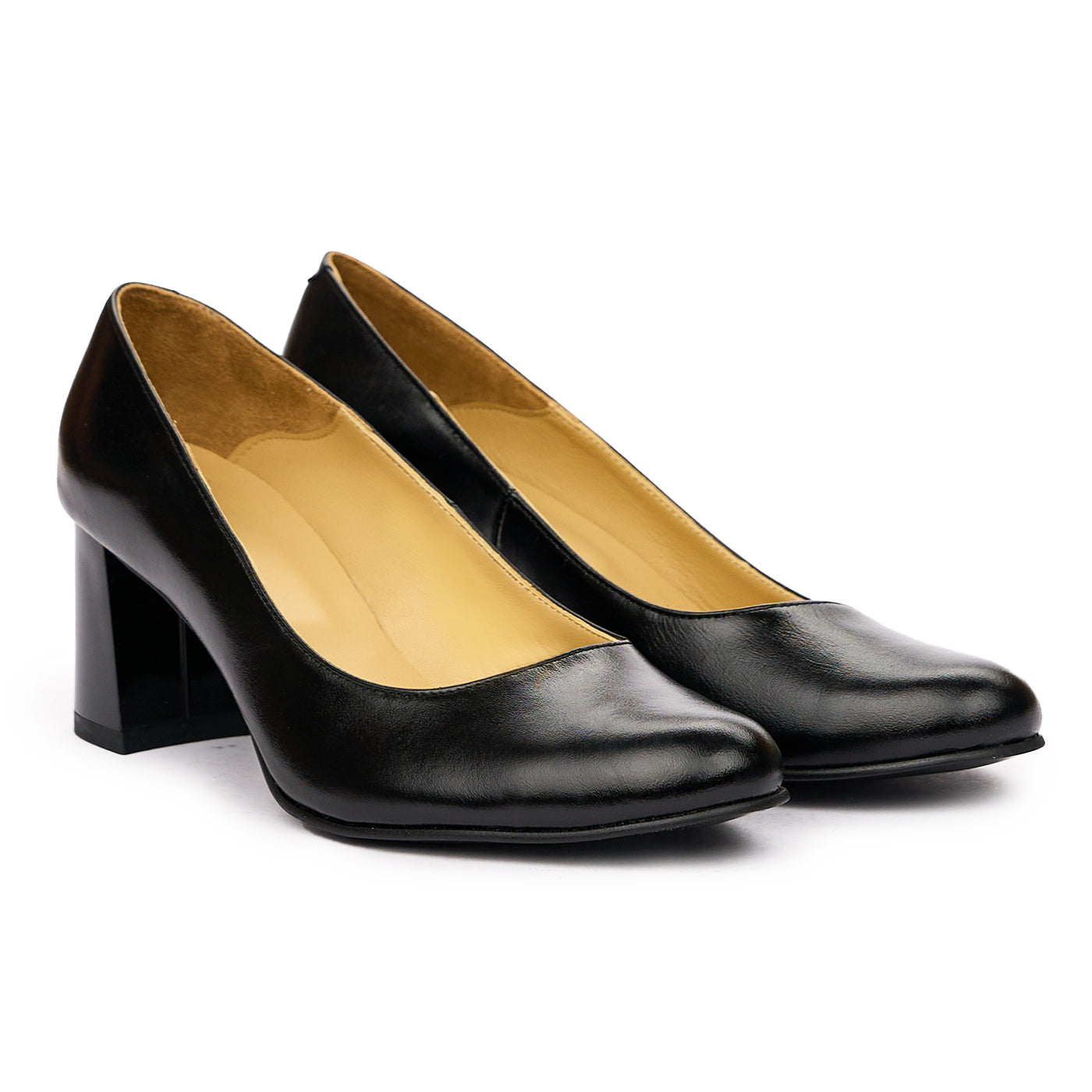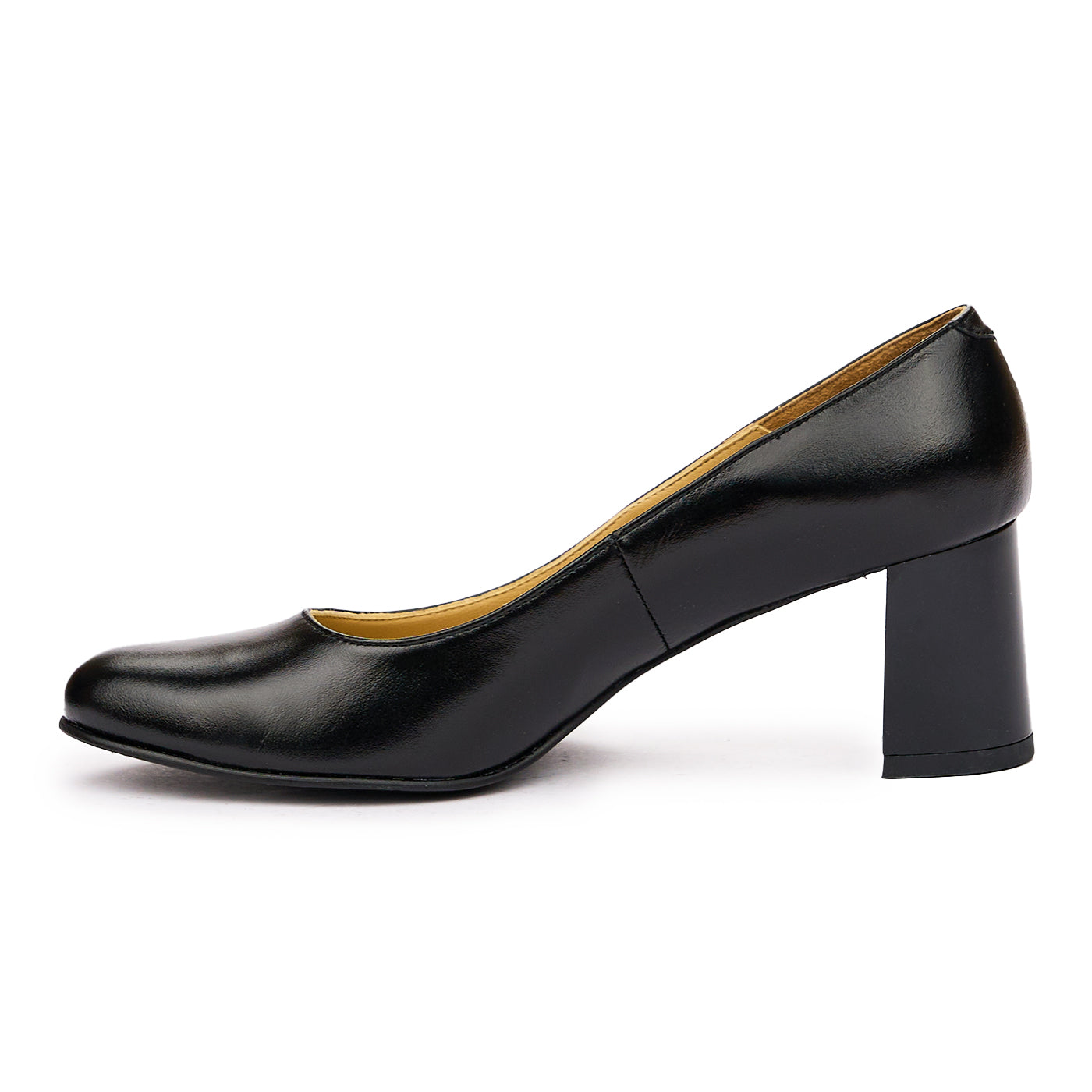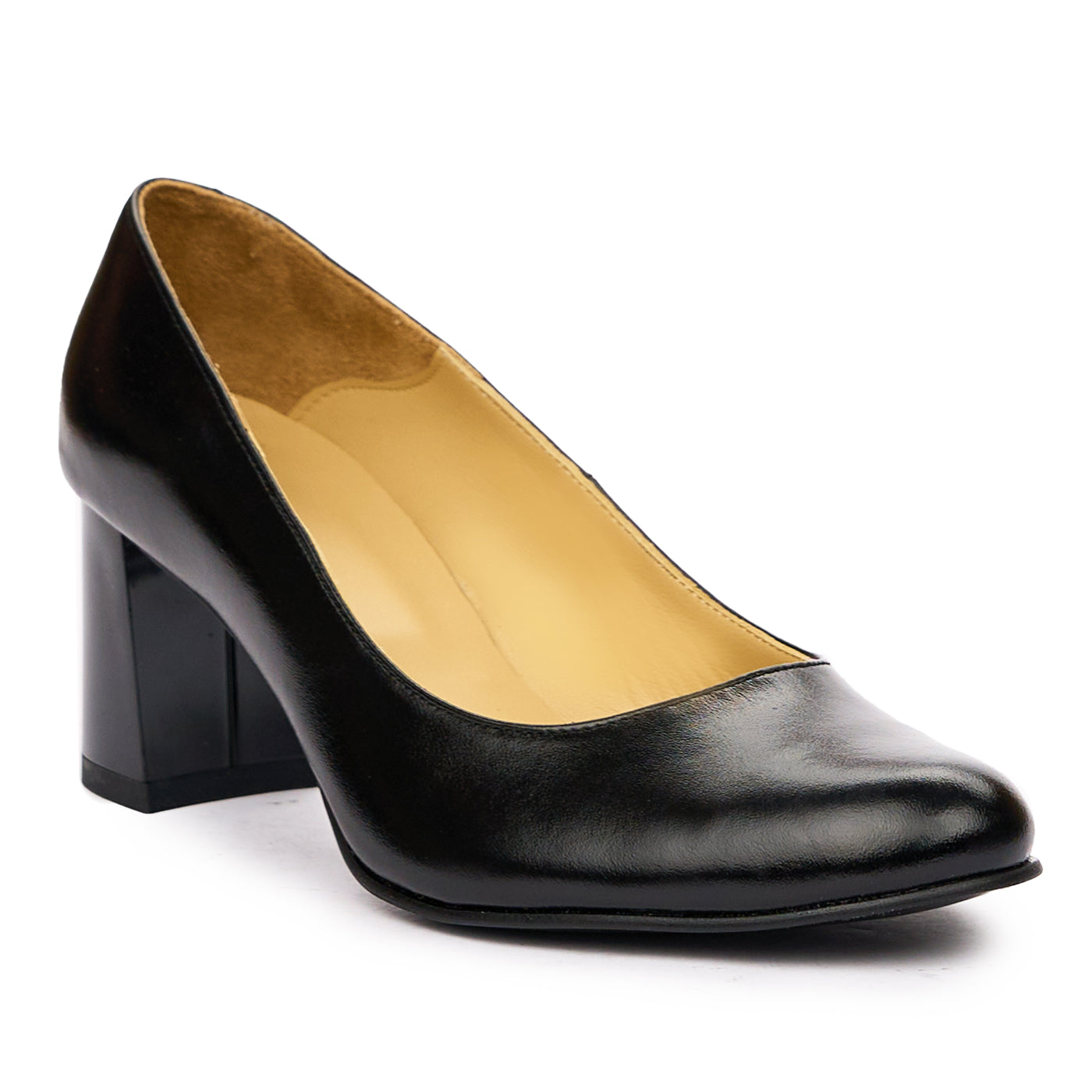 Pantofi dama cu toc gros din piele naturala neagra