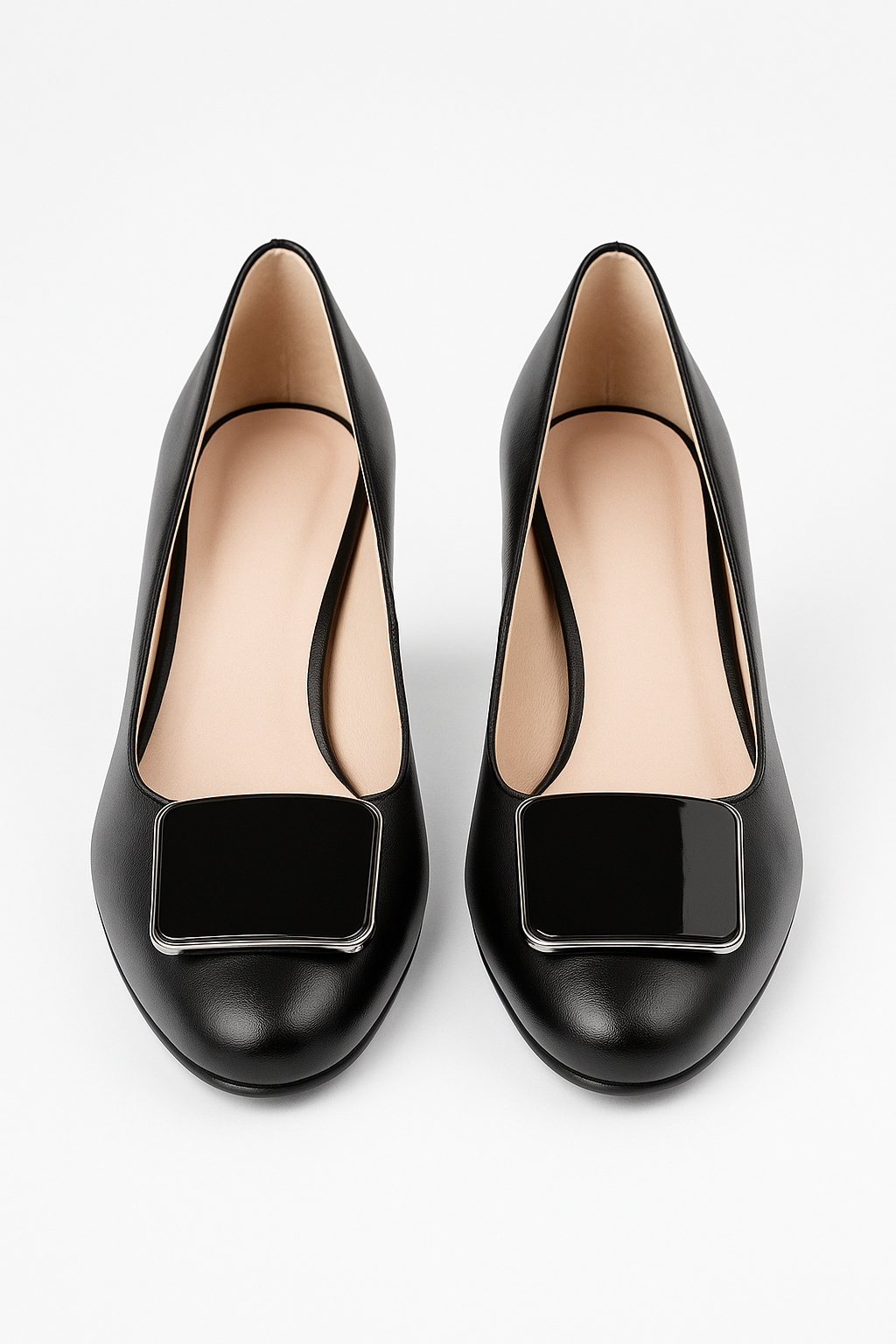 Pantofi Dama Din Piele Naturala Negru Cu Accesoriu 826