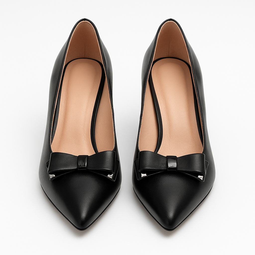 Pantofi Dama Din Piele Naturala Negru Cu Funda 814