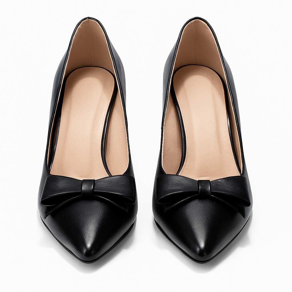 Pantofi Dama Din Piele Naturala Negru Cu Funda 871