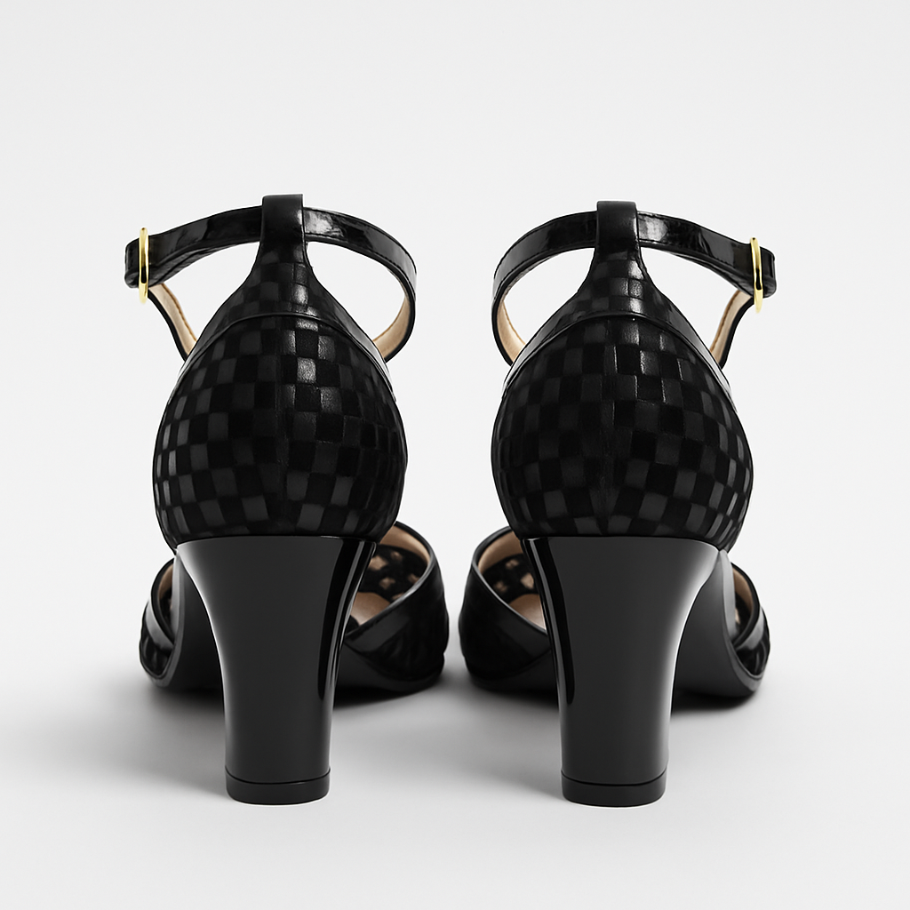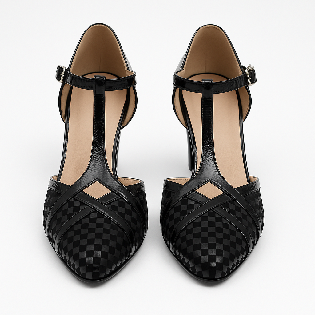 Pantofi Dama Din Piele Naturala Negru Cu Pătrățele 756