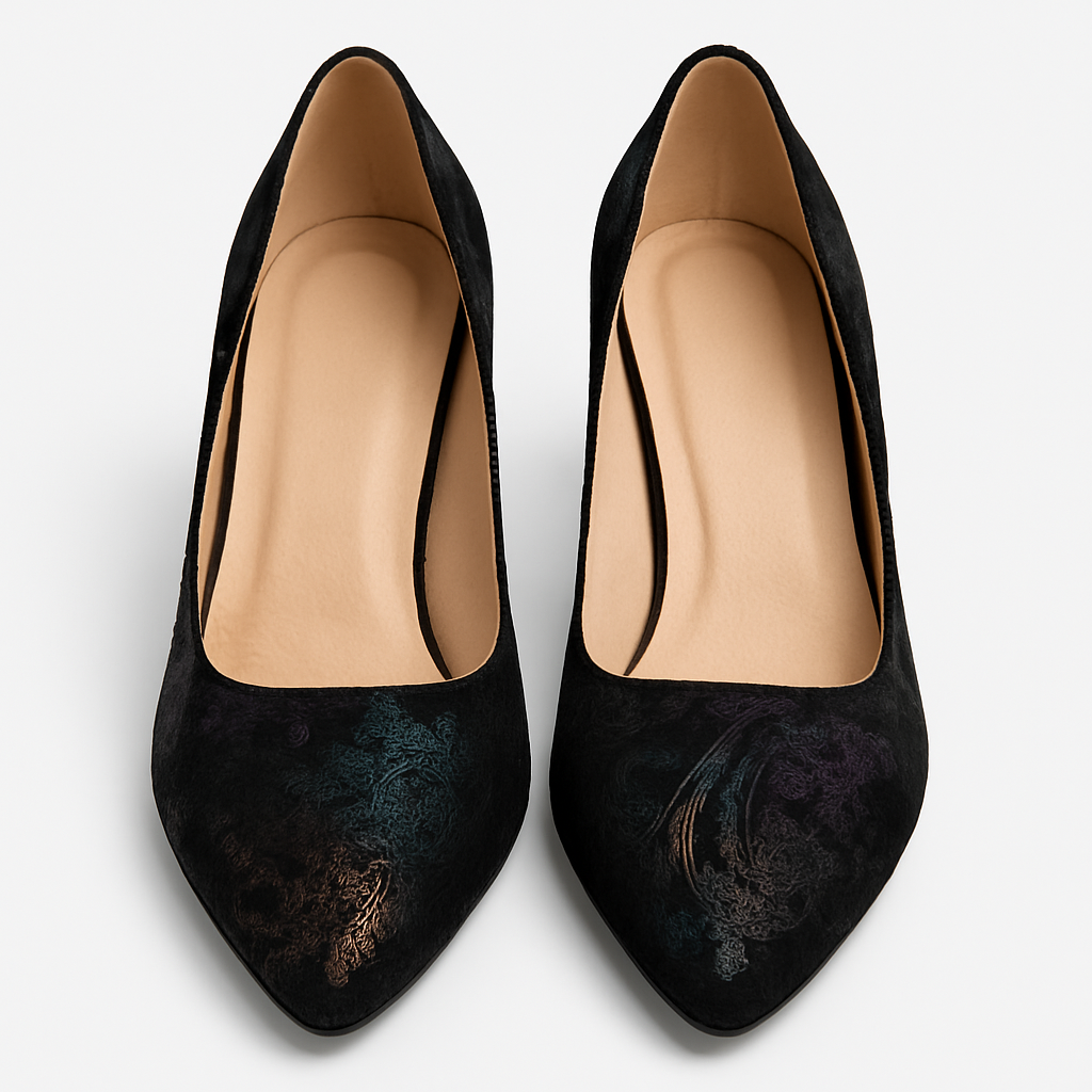 Pantofi Dama Din Piele Naturala Negru Velur Colorat 872