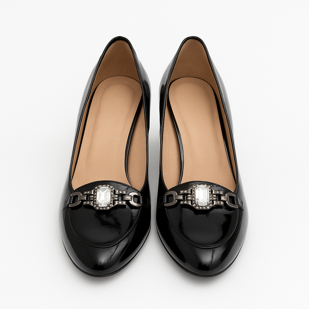 Pantofi Dama Din Piele Naturala Negru Velur Cu Accesoriu 418