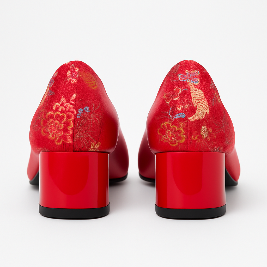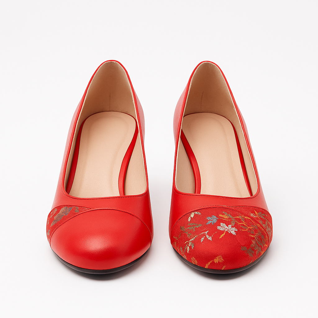 Pantofi Dama Din Piele Naturala Roșu Cu Flori 828