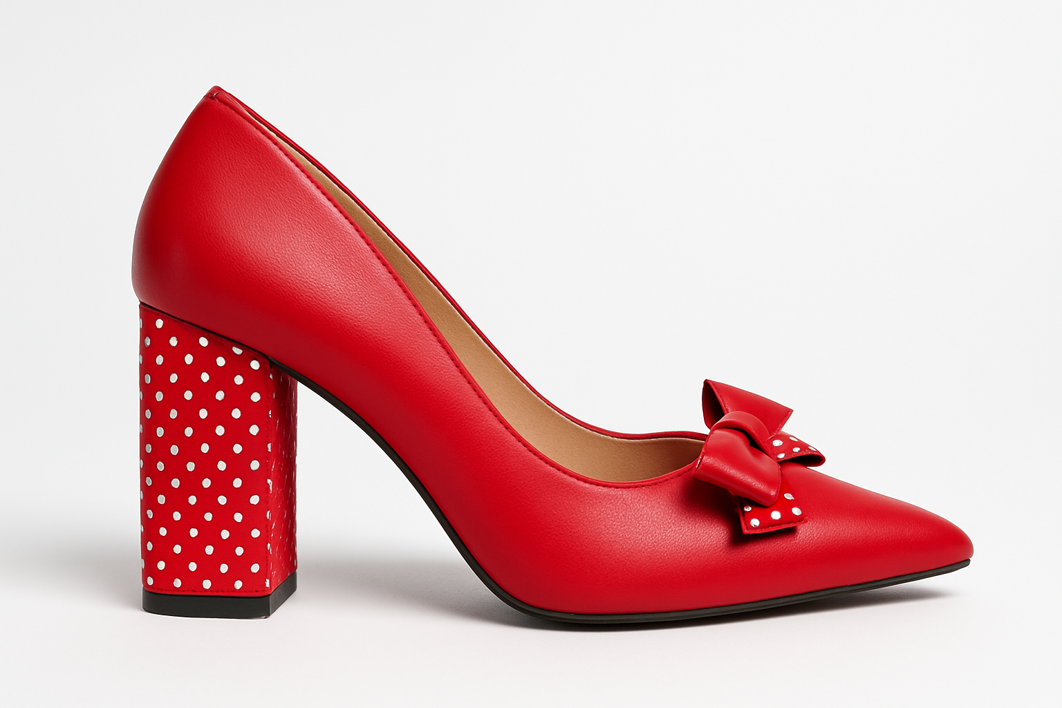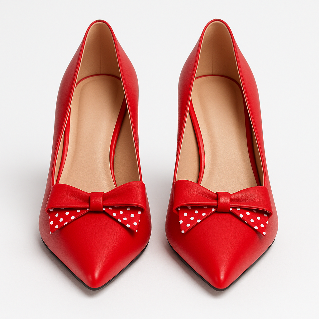Pantofi Dama Din Piele Naturala Roșu Cu Funda+ Toc Îmbrăcat 871