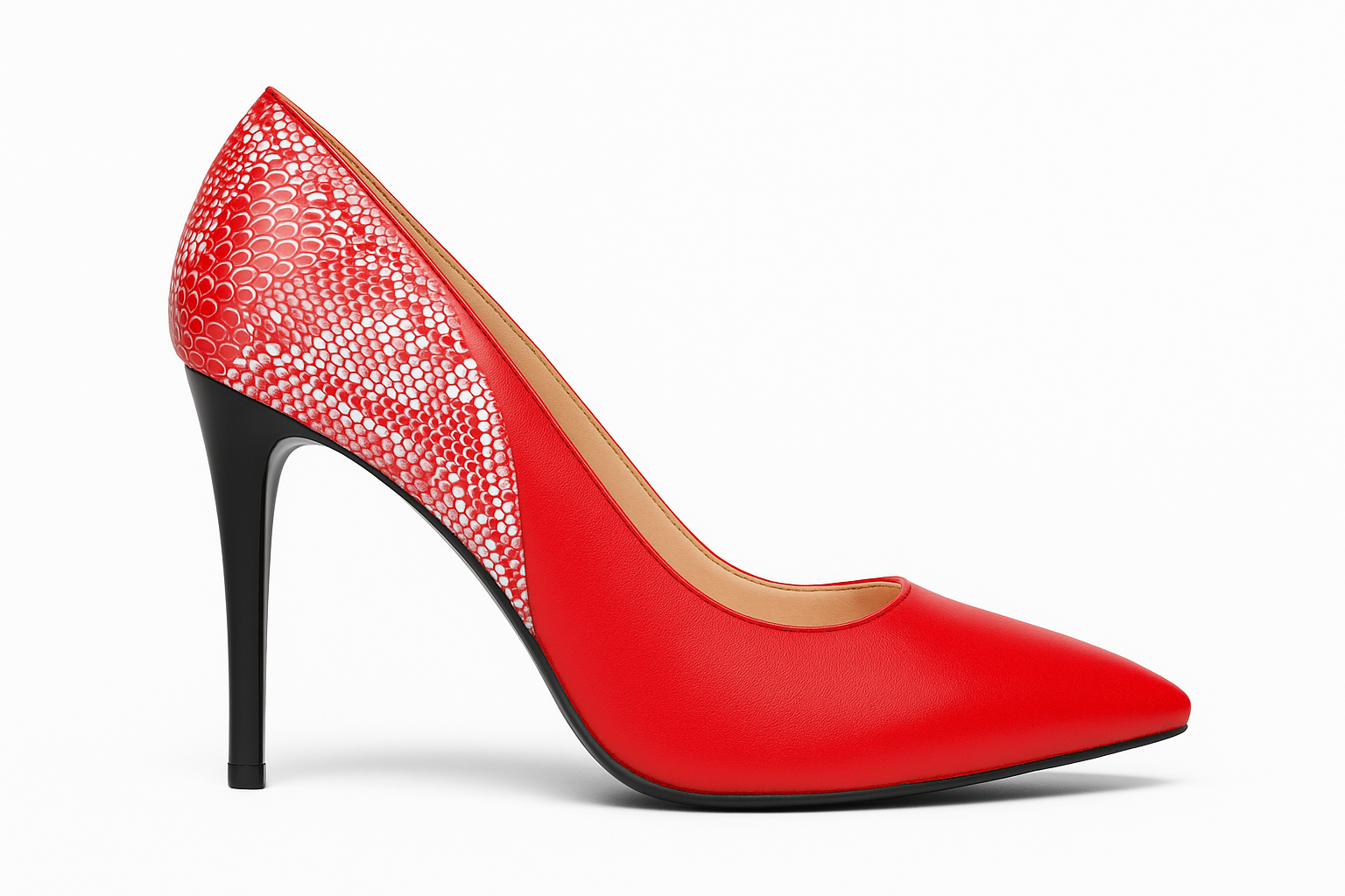 Pantofi Dama Din Piele Naturala Rosu Cu Imprimeu 928