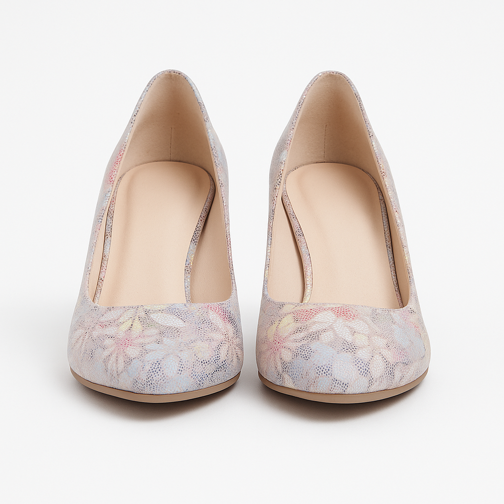Pantofi Dama Din Piele Naturala Roz Cu Flori 820
