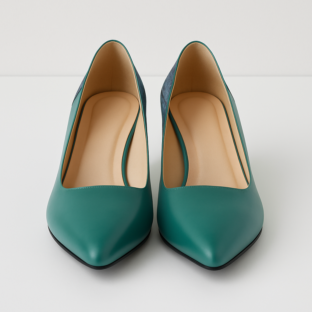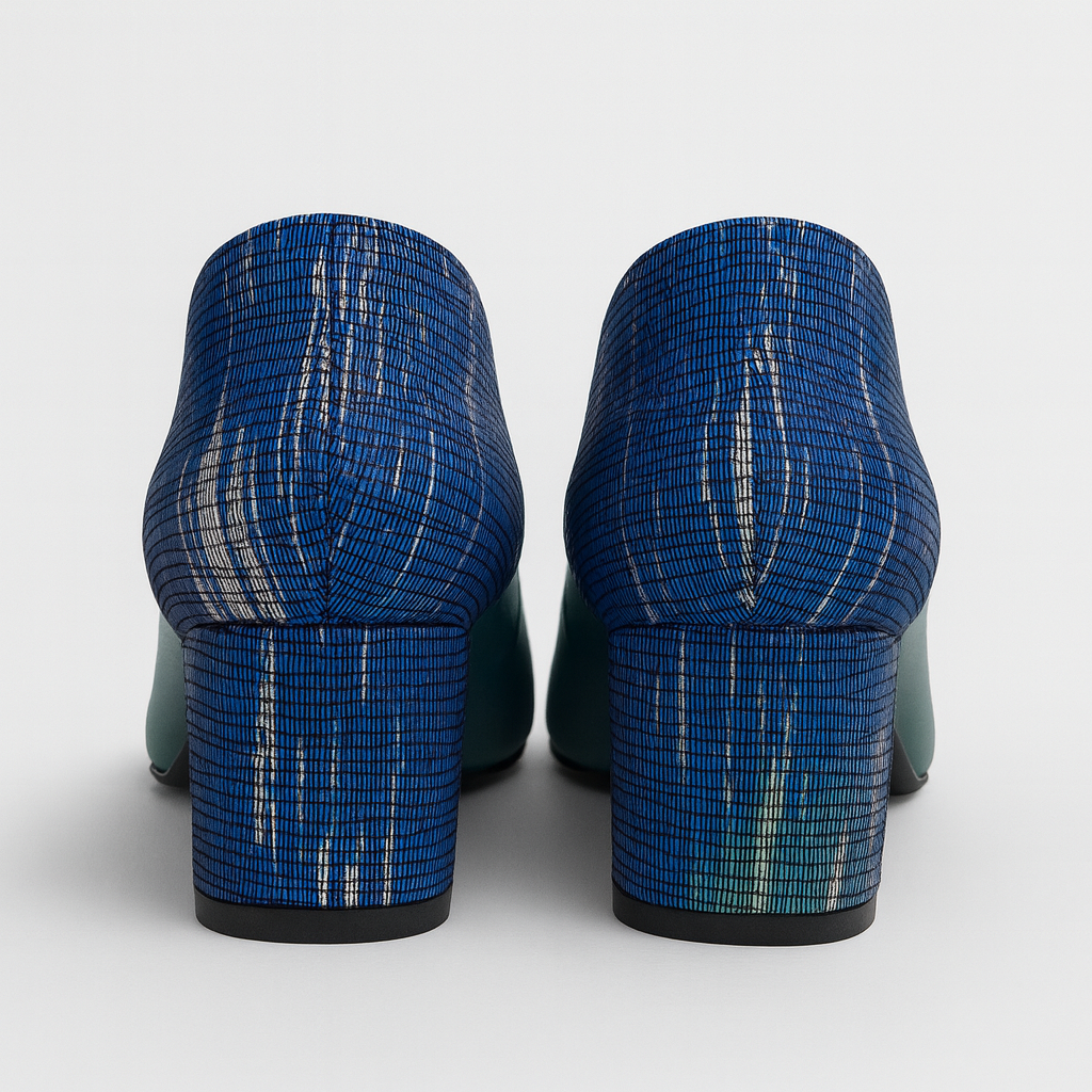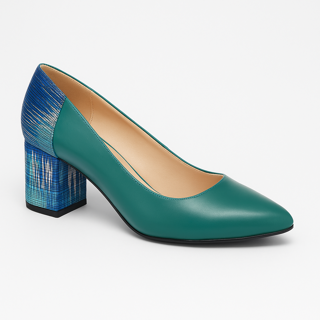 Pantofi Dama Din Piele Naturala Turcoaz Cu Toc Îmbrăcat 786
