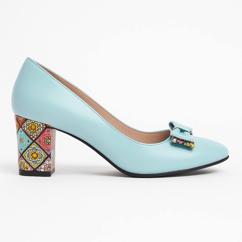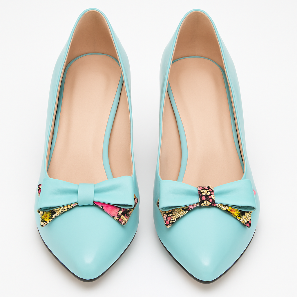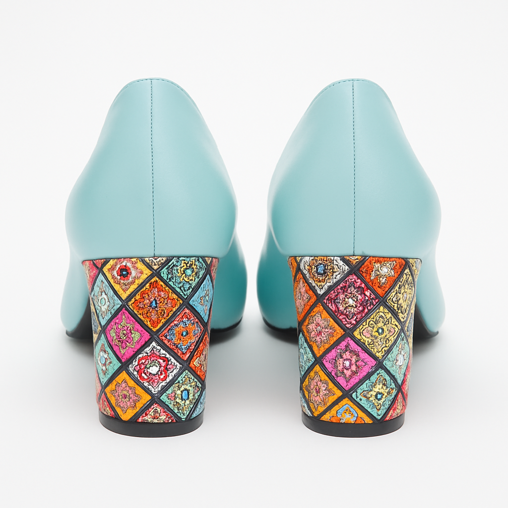 Pantofi Dama Din Piele Naturala Turcoaz Deschis Cu Toc Îmbrăcat 814