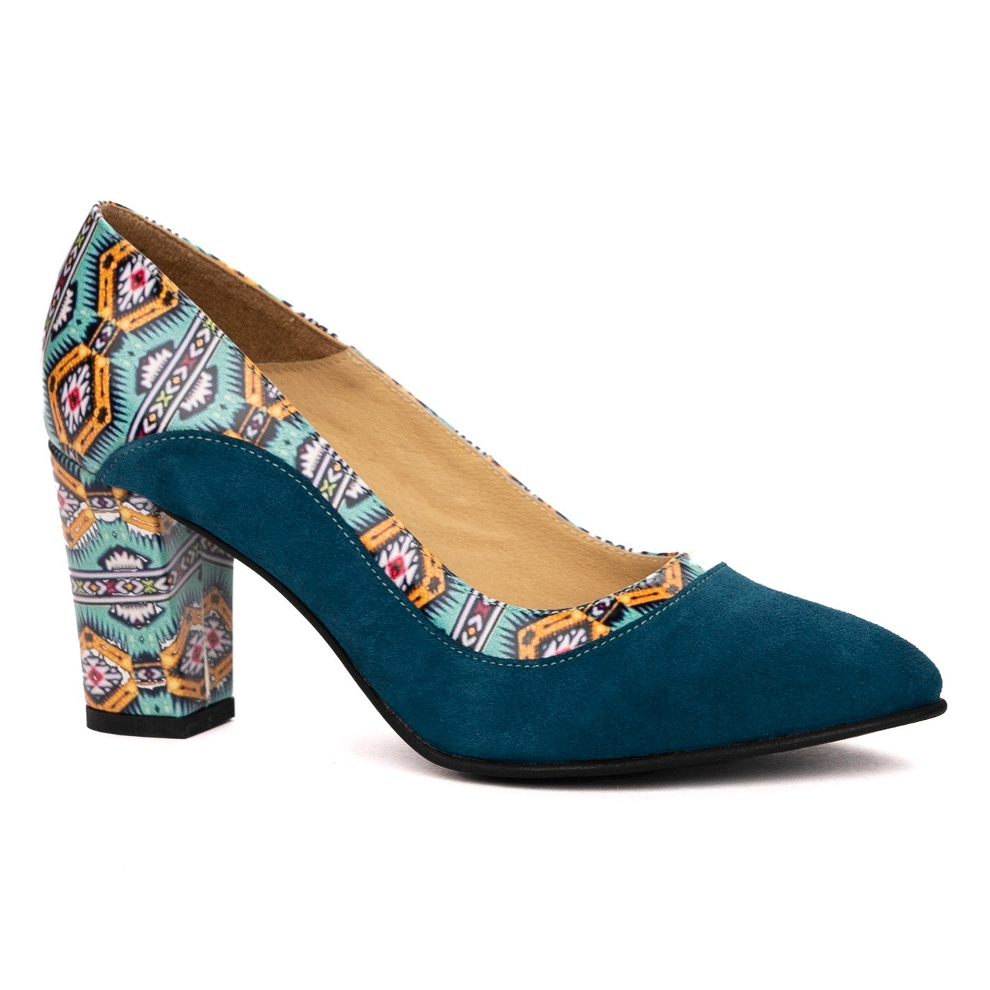 Pantofi dama cu toc gros din piele naturala verde