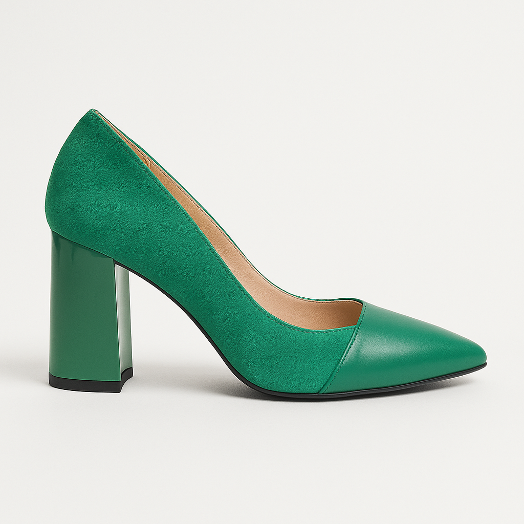 Pantofi Dama Din Piele Naturala Verde Cu Velur 880