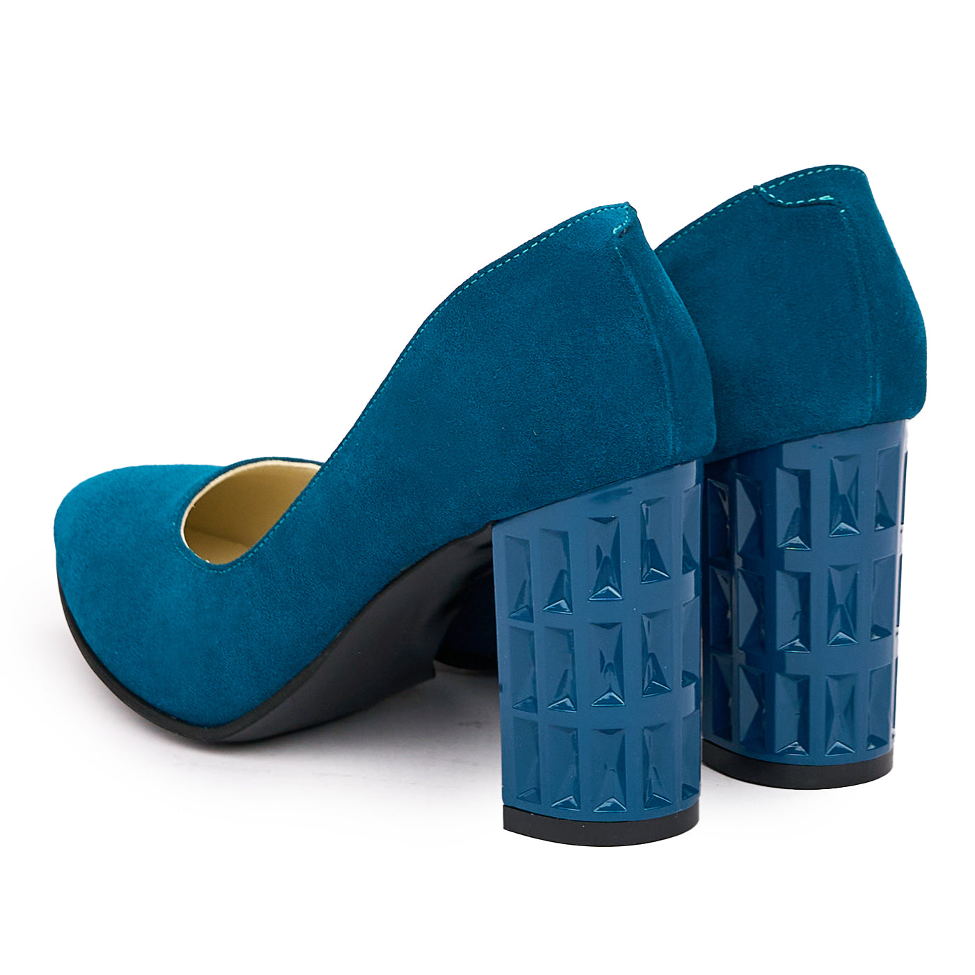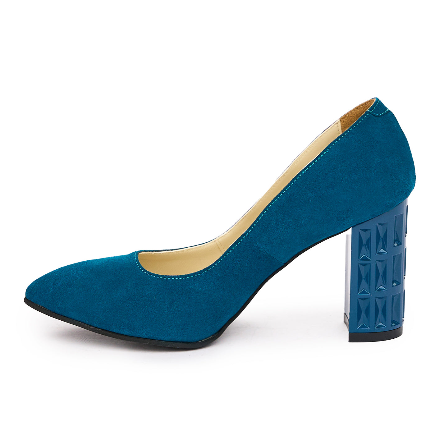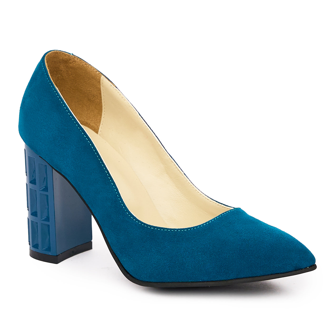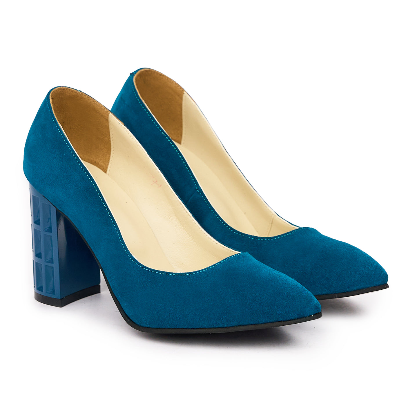 Pantofi dama toc gros din piele naturala albastra 2015