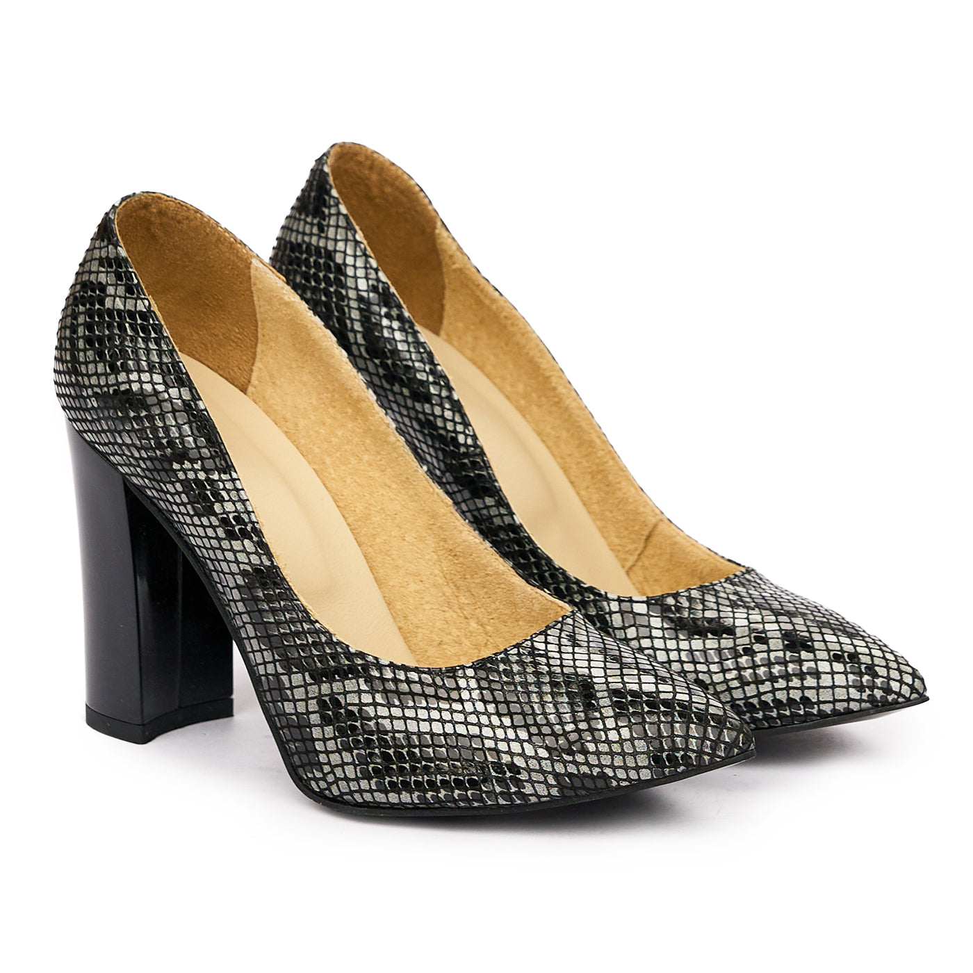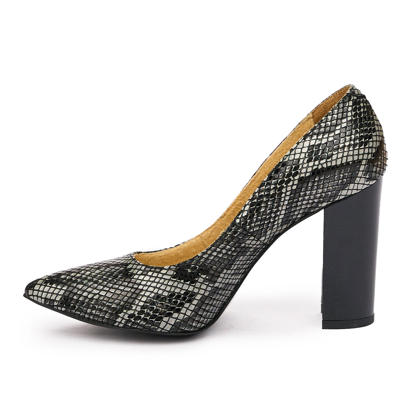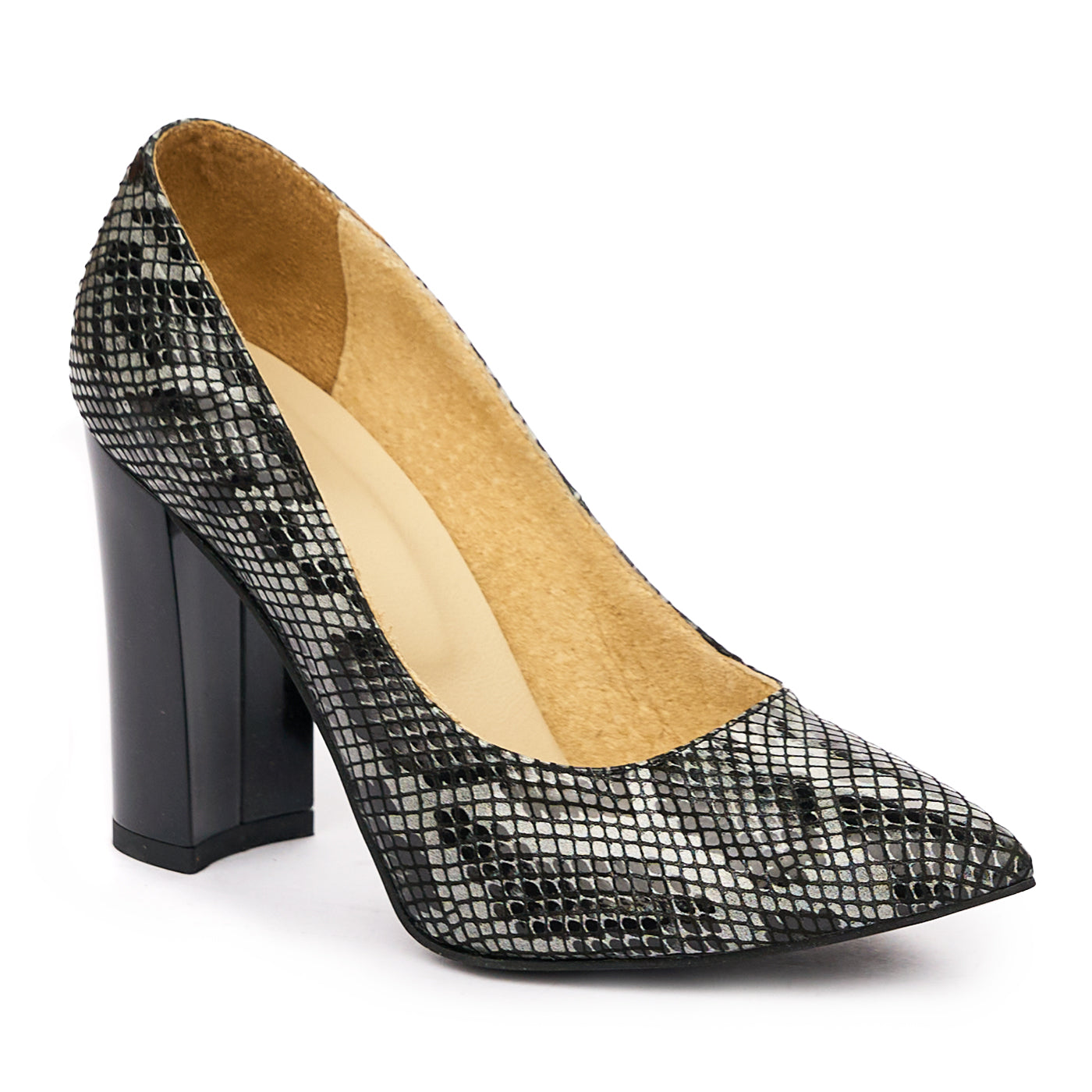 Pantofi dama toc gros din piele naturala gri 2008