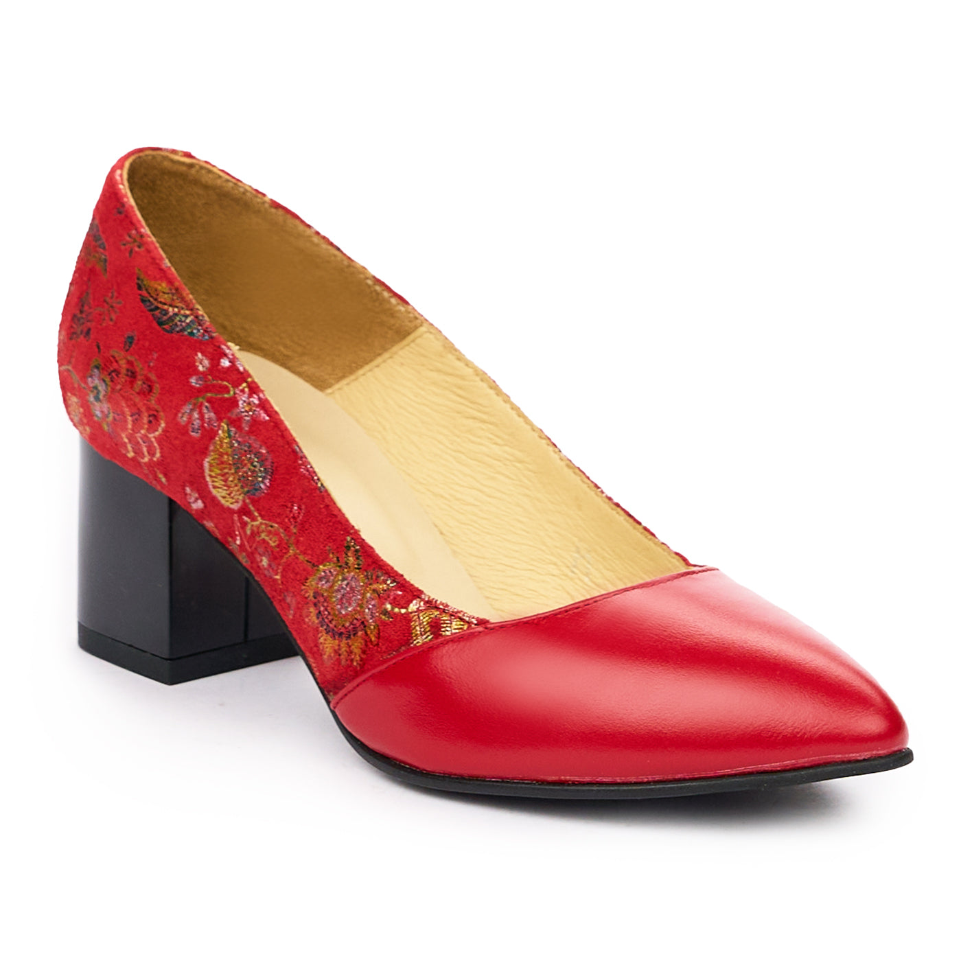 Pantofi dama toc gros din piele naturala rosie 2006