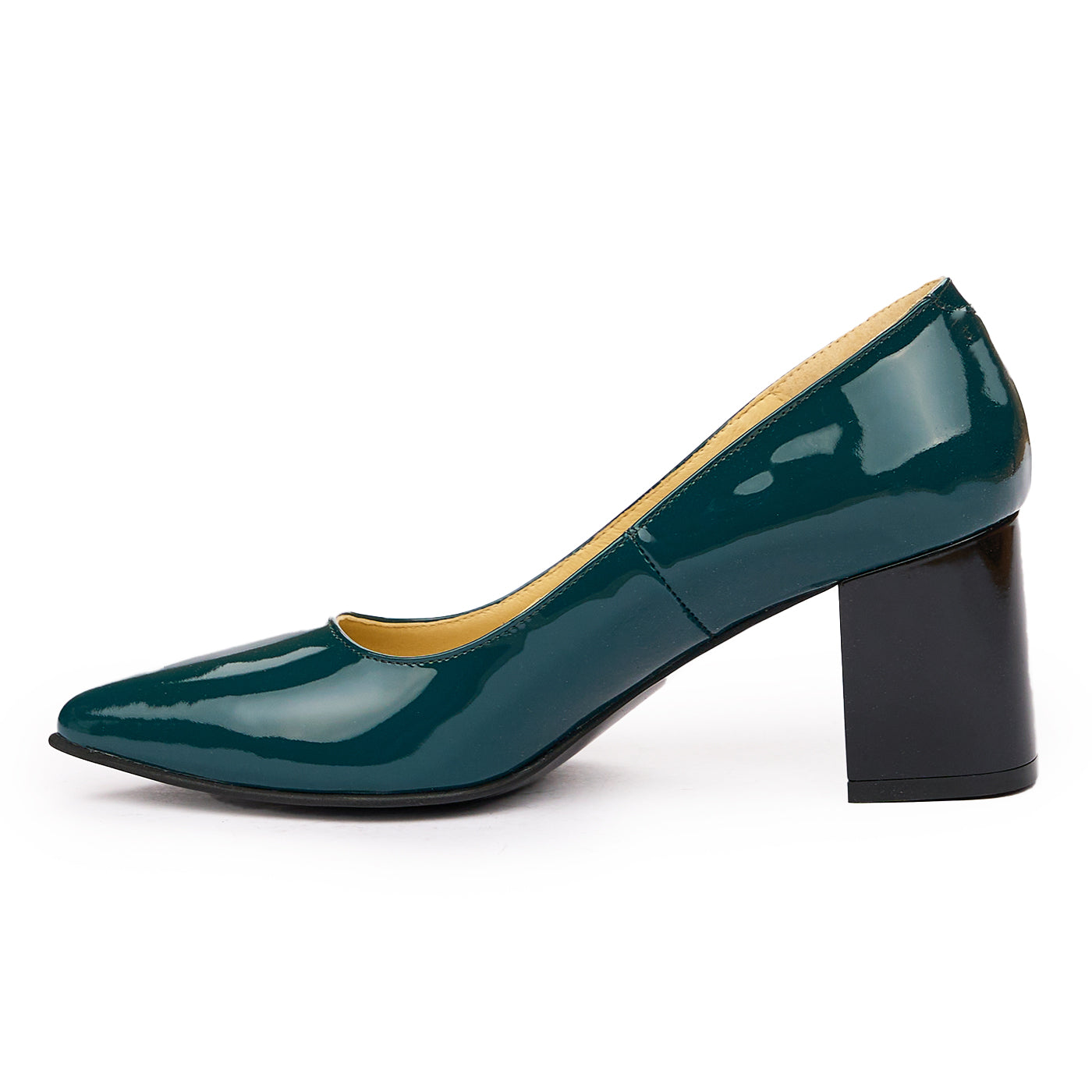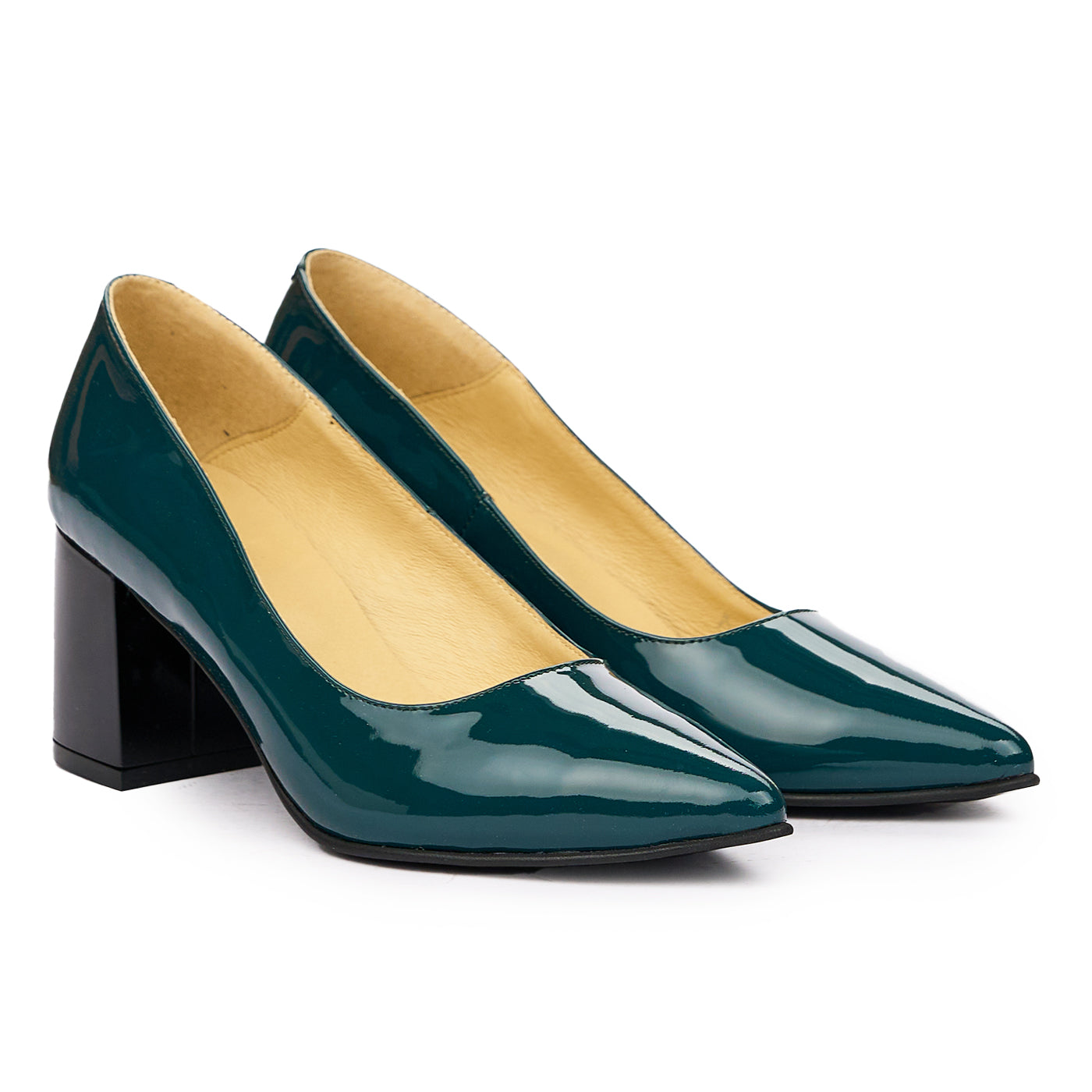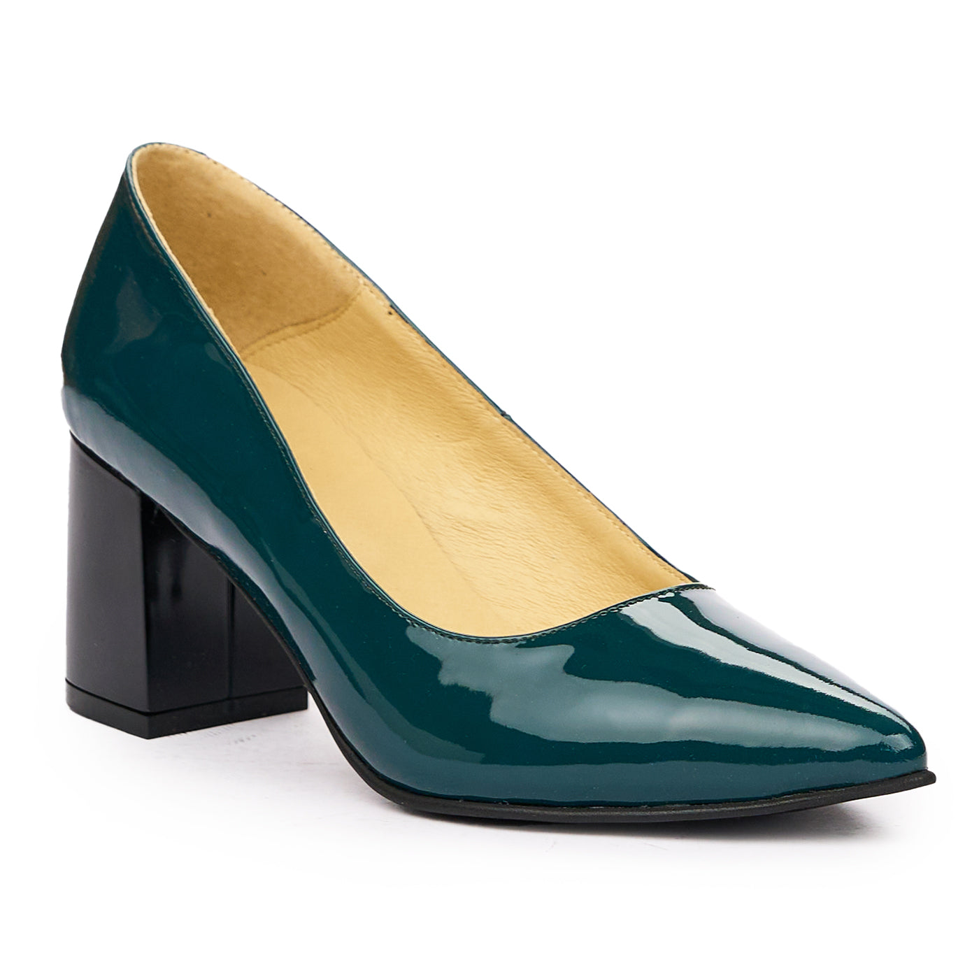 Pantofi dama toc gros din piele naturala verde 2024