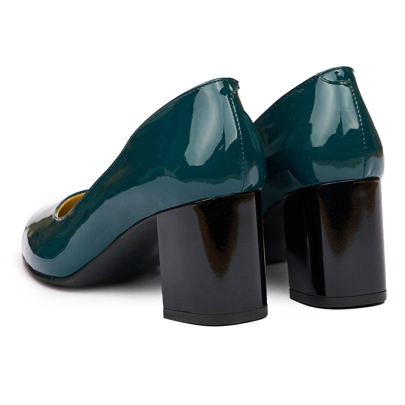 Pantofi dama cu toc gros din piele naturala verde