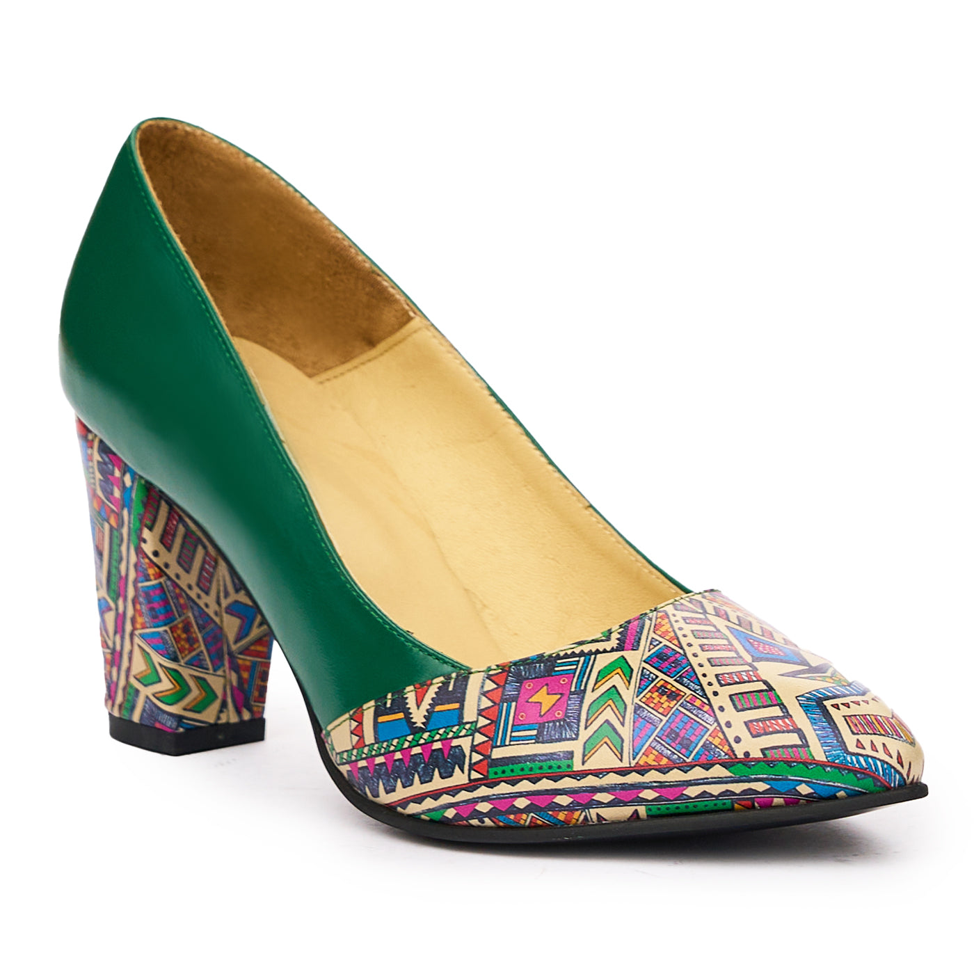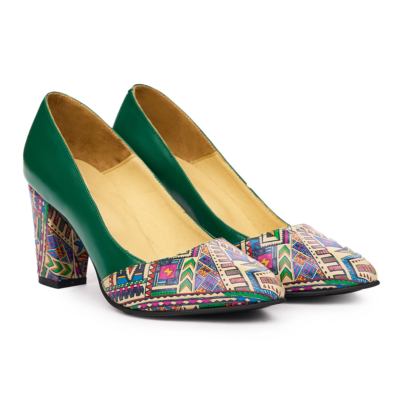 Pantofi dama toc gros din piele naturala verde 2030