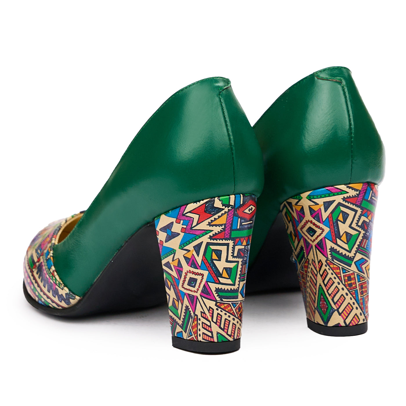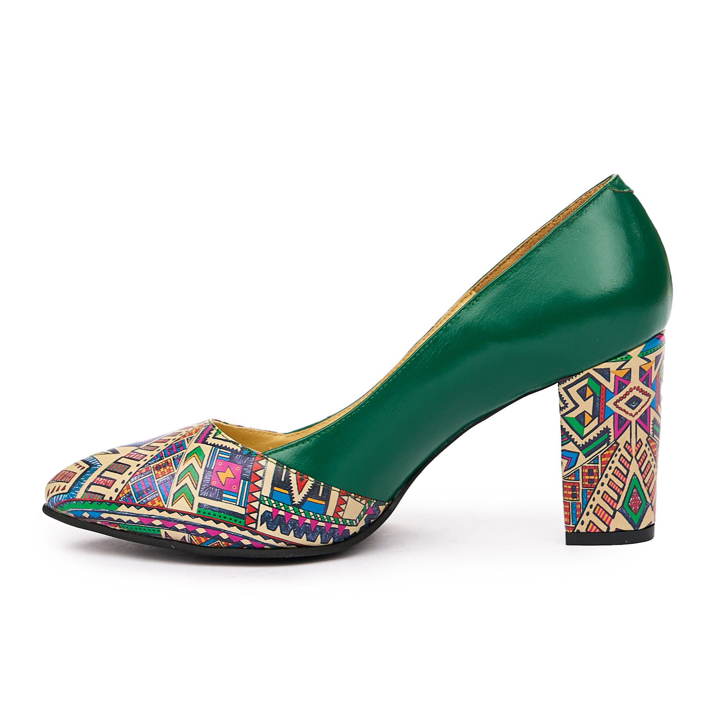 Pantofi dama cu toc gros din piele naturala verde